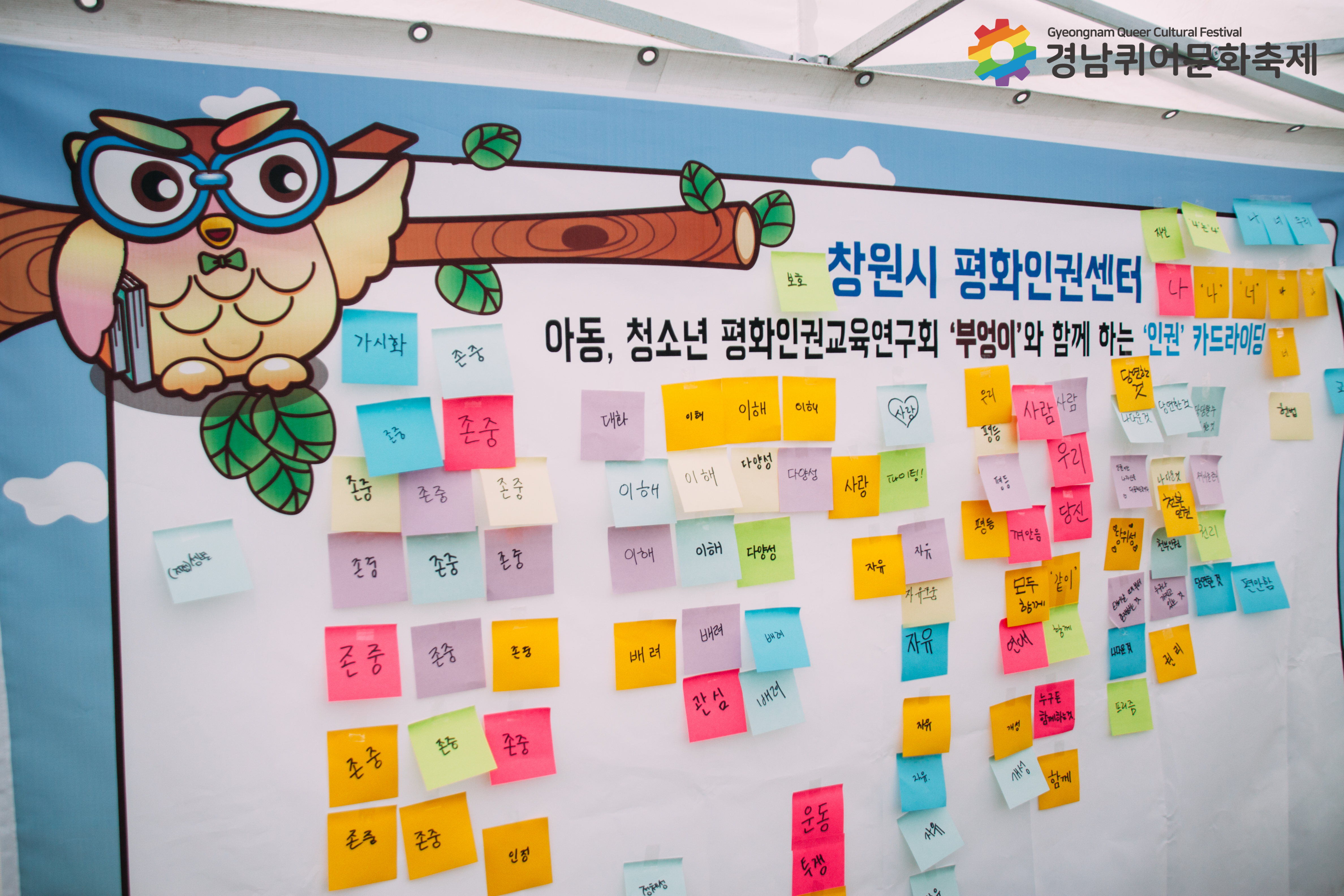 소속단체인 경남장애인권리옹호네트워크와 정의당 경남도당, 다채로운, YQAY, 아수나로 창원지부를 비롯하여 각 지역별 퀴어문화축제, 경남녹색당, 영남대학교 성소수자 모임 YuniQue, 경상대학교 성소수자 모임 Ubique, 제주대학교 퀴어 커뮤니티 퀴여움QUTE, 전라북도 성소수자 모임 열린문, 부산성소수자인권모임QIP, 국가인권위원회 부산인권사무소, 주부산미국영사관 등 총 32개의 부스 35개 단체에서 부스 참여로 축제를 함께 해주셨습니다.